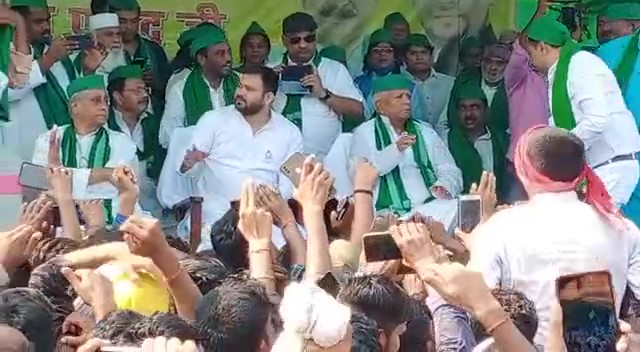 मुंगेर – तारापुर विधानसभा उपचुनाव का चुनाव प्रचार अंतिम दौर में हैं। तारापुर विधानसभा का उपचुनाव 30 अक्टूबर को होना है। इसके लिए सभी दलों के नेता लगातार मैदान में कैंप कर रहे हैं। तारापुर सीट के लिए राजद ने भी पूरी ताकत झोंक दी है। तारापुर के गाजीपुर स्थित ईदगाह मैदान में राजद सुप्रीमो लालू प्रसाद यादव ने चुनावी सभा कर राजद प्रत्याशी अरुण शाह के पक्ष में लालटेन छाप पर मतदान करने की अपील की। काफी लंबे समय के बाद लालू प्रसाद यादव ने चुनावी सभा को संबोधित किया। इस दौरान वे अपनी ठेठ अंदाज में विरोधियों पर हमला करते नजर आए। नेता प्रतिपक्ष तेजस्वी यादव भी जनसभा में उपस्थित थे। उन्होंने भी जनसभा को संबोधित किया साथ ही राज्य और केंद्र सरकार पर जमकर निशाना साधा। चुनावी सभा के दौरान राजद समेत उसके सहयोगी दल के कई नेता, विधायक, कार्यकर्ता समेत हजारों लोग उपस्थित थे। बताते चलें कि राजद अध्यक्ष लालू प्रसाद यादव के चुनावी सभा को लेकर सुरक्षा की चाक-चौबंद व्यवस्था की गई थी।