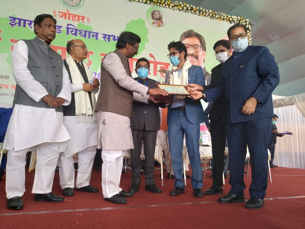 रांची- झारखंड विधानसभा के 21वीं वर्षगाठ के अवसर पर स्थापना दिवस समारोह का आयोजन किया गया। समारोह का उद्घाटन राज्यपाल रमेश बैस ने किया। कार्यक्रम में मुख्यमंत्री हेमंत सोरेन बतौर मुख्य अतिथि उपस्थित हुए। इसके साथ ही स्पीकर रवीन्द्रनाथ महतों सहित तमाम विधायक कार्यक्रम में शामिल हुए। समारोह के दौरान कई लोगों को उनके क्षेत्र विशेष में किये गए उत्कृष्ट प्रदर्शन को लेकर सम्मानित किया गया। इसके साथ ही कोरोना महामारी से बचाव को लेकर चलाये जा रहे टीकाकरण अभियान में राज्य भर में प्रथम स्थान प्राप्त करने पर माननीय मुख्यमंत्री हेमंत सोरेन के द्वारा पूर्वी सिंहभूम के उपायुक्त,सूरज कुमार को सम्मानित किया गया। विधान सभा के पांच कर्मी को उनकी उल्लेखनीय सेवा के लिए सम्मानित किया गया। देश की रक्षा में शहीद हुए सैनिकों और नक्सली अभियान में शहीद हुए पुलिसकर्मियों के परिजनों को भी सम्मानित किया गया।